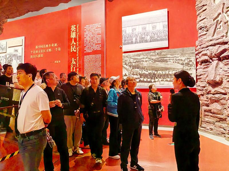 紅旗渠精神的內(nèi)涵是“自力更生、艱苦創(chuàng)業(yè)、團(tuán)結(jié)協(xié)作、無(wú)私奉獻(xiàn)”,是在修建紅旗渠的過(guò)程中形成的。紅旗渠動(dòng)工于1960年,勤勞勇敢的30萬(wàn)林州人民苦戰(zhàn)10個(gè)春秋,僅僅靠著一錘、一鏟、兩只手,在太行山懸崖峭壁上修成了這全長(zhǎng)1500公里的紅旗渠。大家聽(tīng)著講解員講述紅旗渠修建過(guò)程中的感人故事,通過(guò)實(shí)景、實(shí)物、實(shí)例、實(shí)事近距離觸摸歷史,體驗(yàn)修建紅旗渠的艱難險(xiǎn)阻,全過(guò)程多維度學(xué)習(xí)林縣人民戰(zhàn)天斗地、艱苦奮斗的光輝歷程,深入感受他們憑著一條肩膀一雙手、一錘一釬一繩索,逢山鑿洞、遇溝架橋,歷經(jīng)10年風(fēng)霜雨雪,建成長(zhǎng)達(dá)1500公里的“人工天河”紅旗渠的雄偉壯觀。
