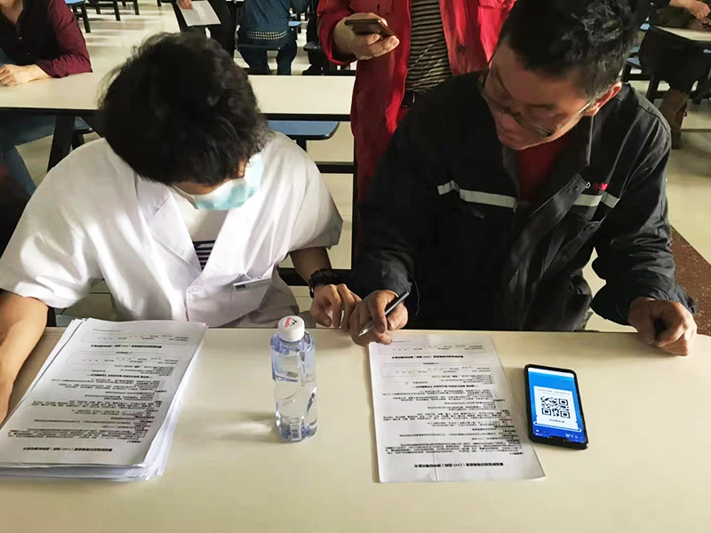 醫(yī)務(wù)人員仔細(xì)回答員工的問題